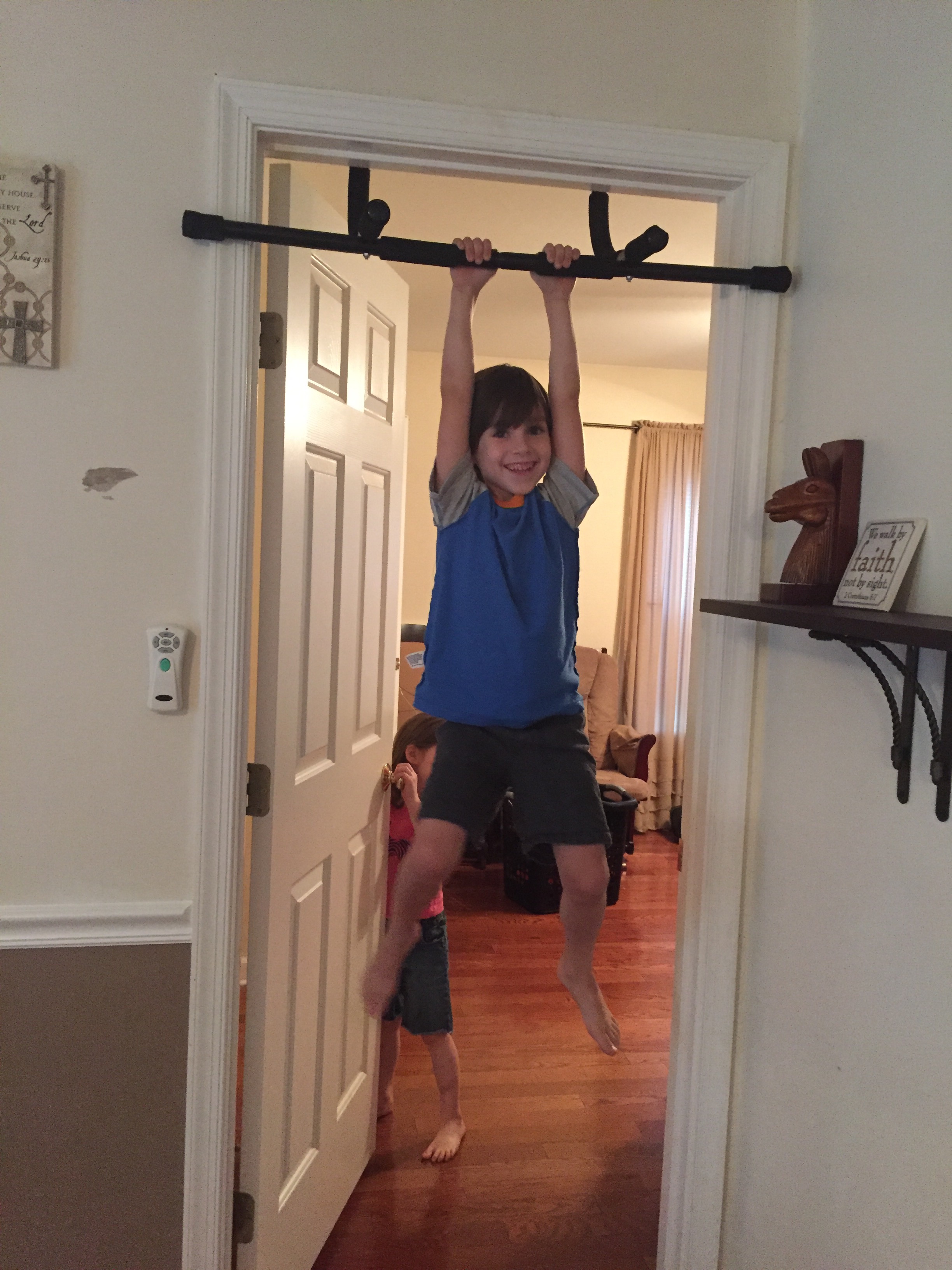 Of course, immediately after this I set up my pull up bar and my son goes to work on his pull ups.